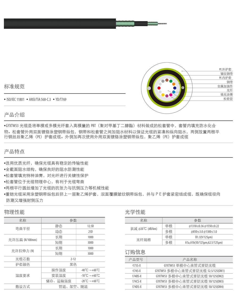 室外中心束管式重鎧光纜(GYXTW53)
